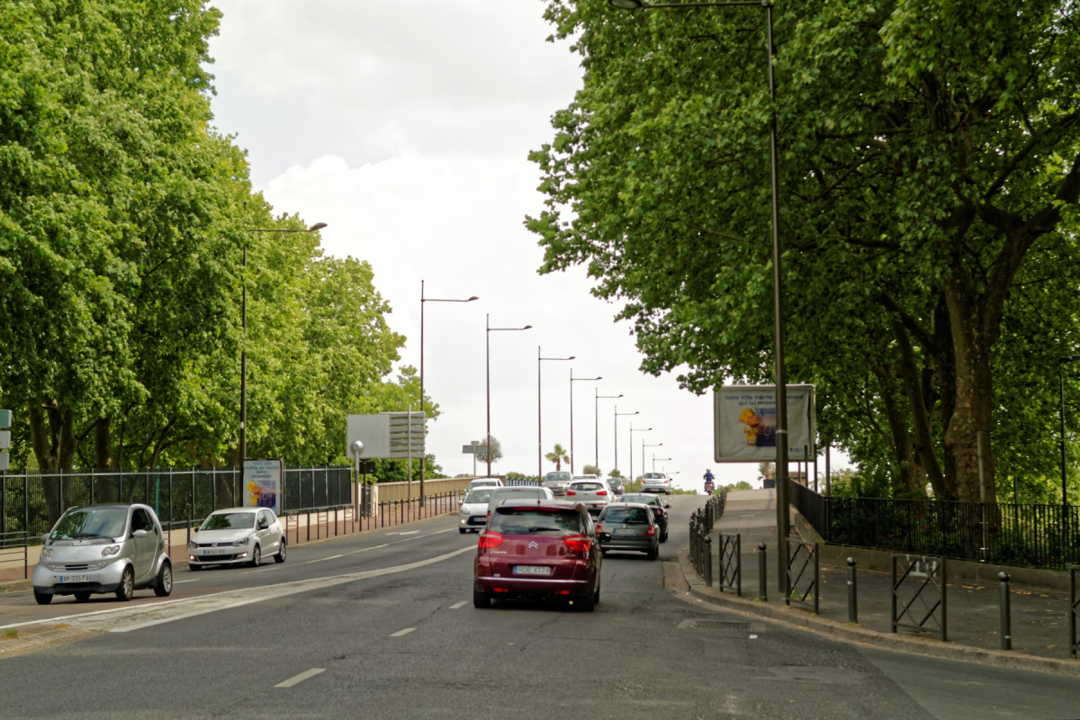 Enfin, pour rejoindre à nouveau l’Avenue Verte, je dois donc franchir le Pont d’Argenteuil, à la chaussée peu cyclable. Alors, à Rome, fais comme les Romains : je passe par le trottoir du pont. [Note : depuis la toute fin Juillet, grâce à MDB Argenteuil Bezons, le trottoir est officiellement cyclable – cf. les changements sur ce trajet]