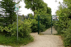 En Juillet 2015, il fallait avoir une bonne idée du trajet théorique, car dans le parc il fallait passer outre un panneau « impasse » pour contourner les travaux et retrouver la voie cyclable.