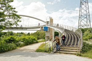 Enfin, pour rejoindre à nouveau l’Avenue Verte, je dois donc franchir le Pont d’Argenteuil, à la chaussée peu cyclable. Alors, à Rome, fais comme les Romains : je passe par le trottoir du pont. [Note : depuis la toute fin Juillet, grâce à MDB Argenteuil Bezons, le trottoir est officiellement cyclable – cf. les changements sur ce trajet]